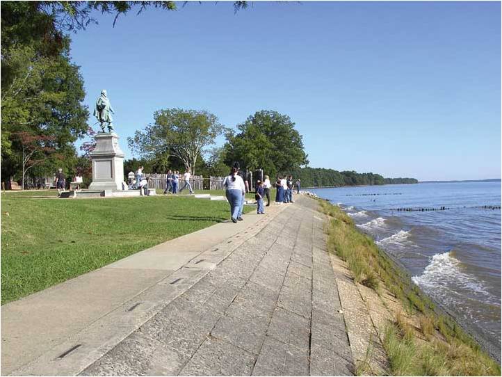 This revetment along the James River helps to prevent the erosion of Jamestown Island in the vicinity of where Captain
